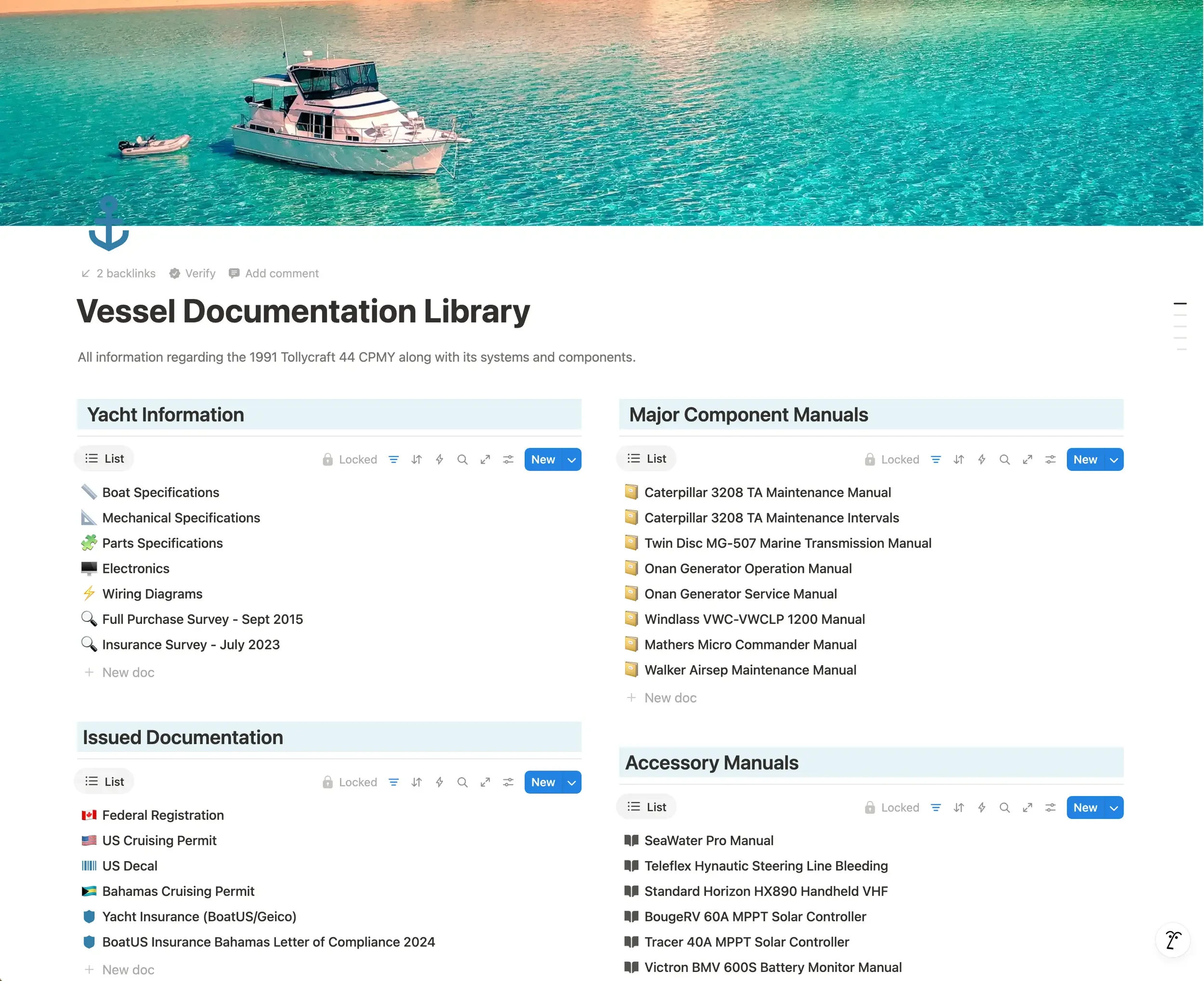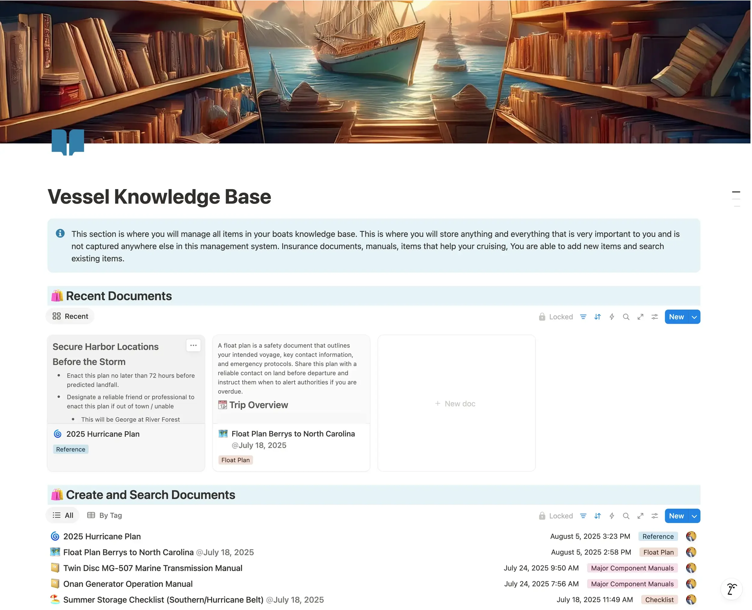 Everything you know about your boat, your systems, and your cruising life, all in one place.